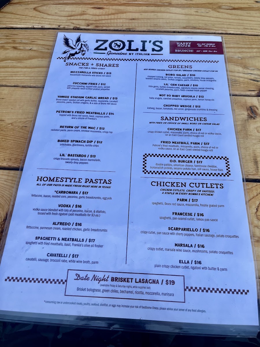 Welcome to Zoli's Pizza, a delightful haven for pizza lovers located in Fort Worth, TX. Here, the menu is thoughtfully curated to cater to all ages and preferences. Each dish showcases fresh ingredients and a dedication to flavor that makes every bite memorable.